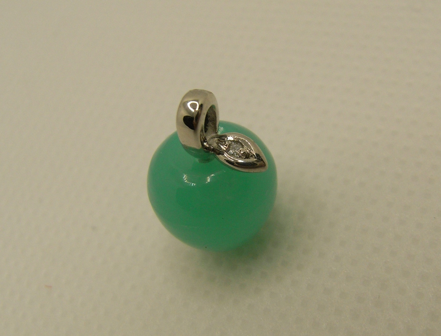出来上がった青りんごの葉をルーペで見てわかりました。1/100キャラットのダイアを入れるための厚みだったのだな、と。中の人その3:ジェモロジストはワックス科だったもので、どうしても軽量化を図りがちです……。